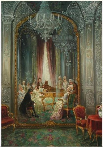 Rococointerior with persons arround a table