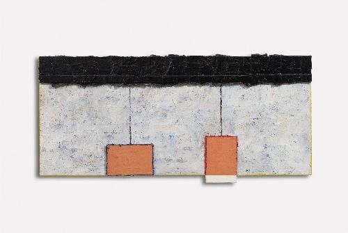 | Oil canvas and wooden elements on 3-part canvas mounted together with metal hinges on the reverse | |