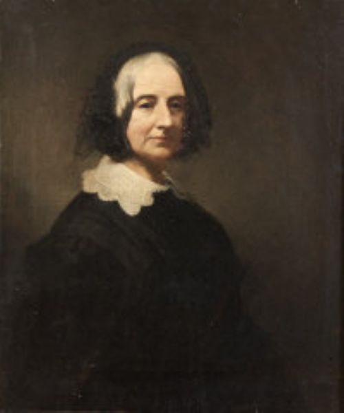 Portrait of an elderly lady, half length, seated in a black lace bonnet and white lace collar