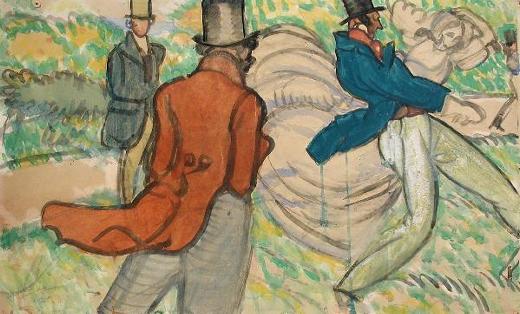 An Elegant Lady and Gentlemen Racing Greyhounds on a Moor