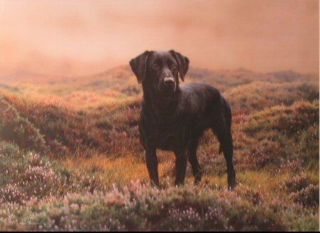 Kate of Drakeshead, standing on all fours on the moors in heather