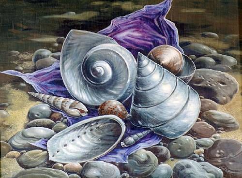 Still life, sea shells on the sea floor