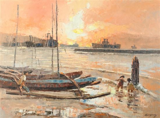 HARBOR SCENE AT DUSK