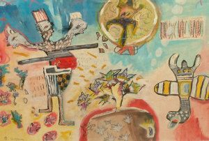 Gouache black and coloured crayon