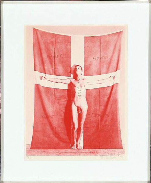 Composition, man and Danish flag