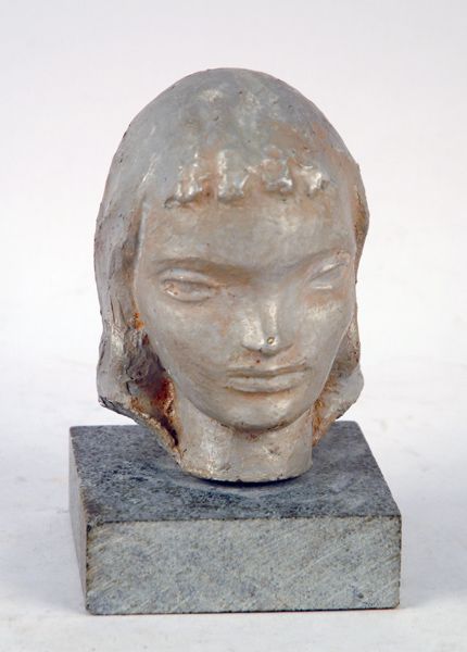 Terracotta bust on soapstone base