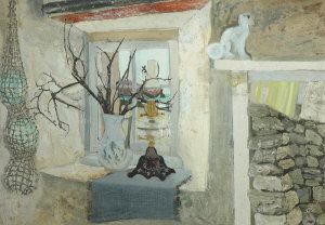 Interior with lamp, ewer and fishnet