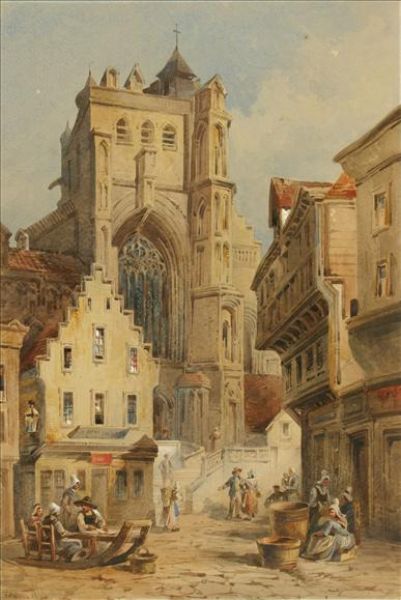 A market place before the cathedral, Nothern Fance or Belgium