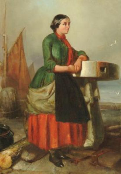Scarborough Fisherwoman, Standing on a Quayside Leaning on a Capstan