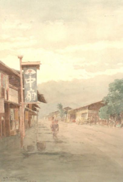 Figure on a village street