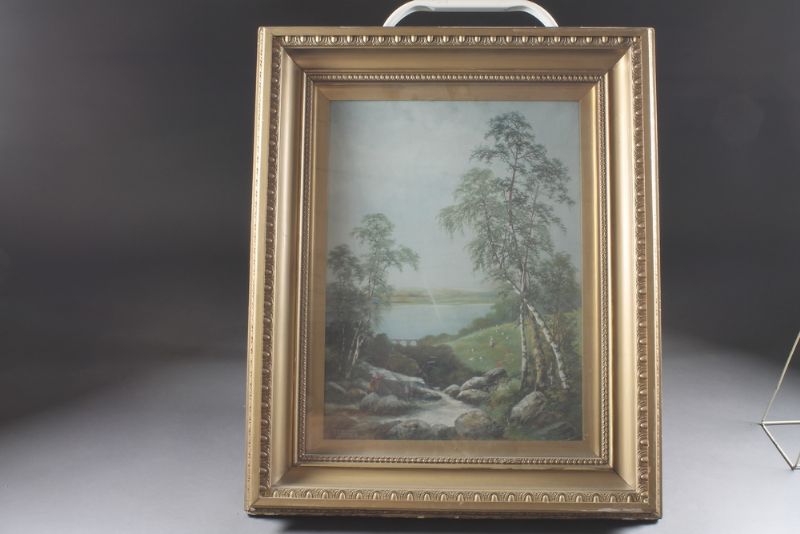 Figure with Fishing, Lake in Distance, Shepherdess and Sheep