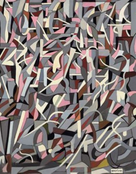 Composition abstraite en gris et rose