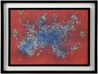 acrilico e coriandolo su tela 50x70 cm, firma e anno al retro, opera registrata presso l'Archivio delle Opere Tano Festa a cura di Anita Festa come da certificato d'autenticità ed archiviazione su foto, registrata presso l'Archivio Tano Festa, Studio | |