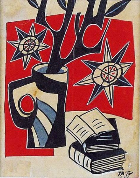 NATURE MORTE AUX LIVRES ET VASE DE FLEURS.