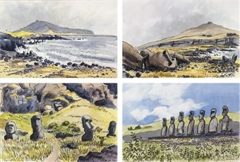 | Four views of Easter Island, South-East Pacific, including: Poke Volcano; Moais at Rano Raraku; Moais at Aku Aki; and Fallen Moa | |