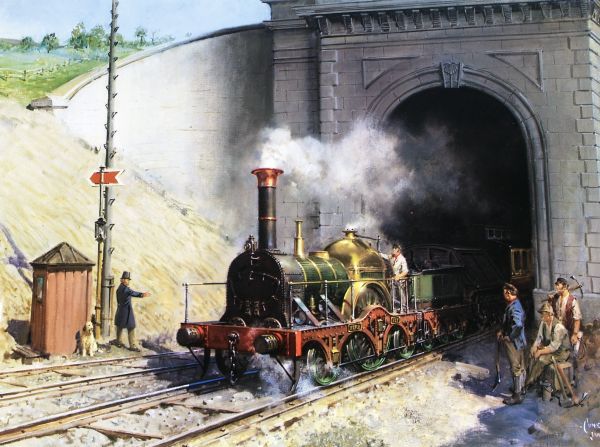 | 'The Great Western Railway Locomotive Fire Fly Leaves Box Tunnel with a Down Express' | |