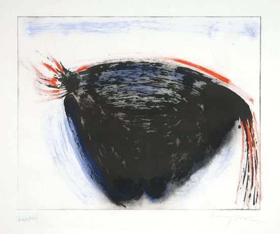 | Etching with extensive handcolouring in red gouache and blue crayon, on wove paper | |