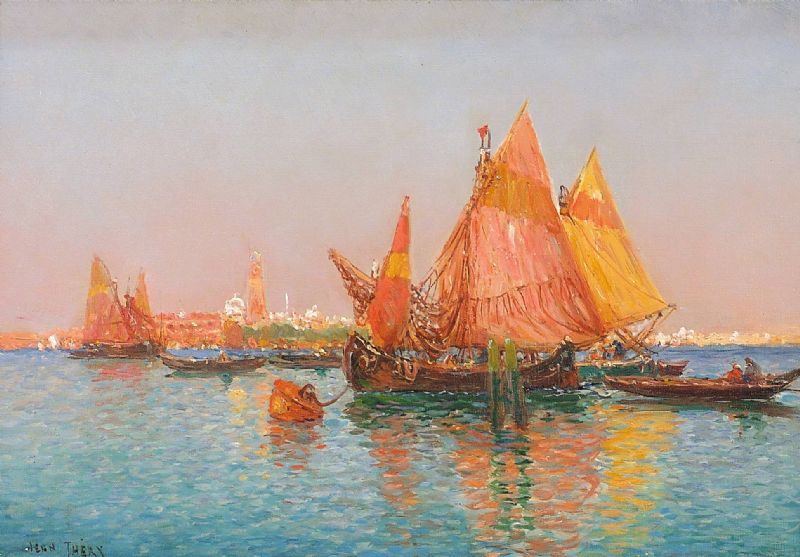 BATEAUX MOUILLANT SUR LA LAGUNE A VENISE