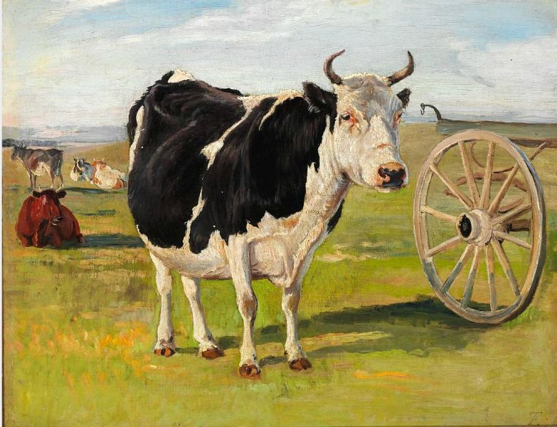 A black-and-white cow.