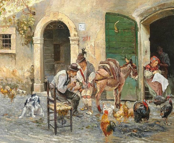 | The smith shoes the donkey in the village Sora | |