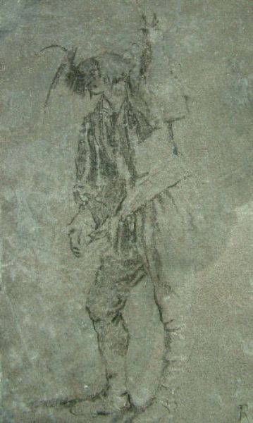 Study of a labourer/musician carrying an item on his back