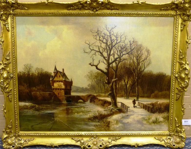 | Sportsman and his Dog on a Footbridge in a Winter Landscape | |