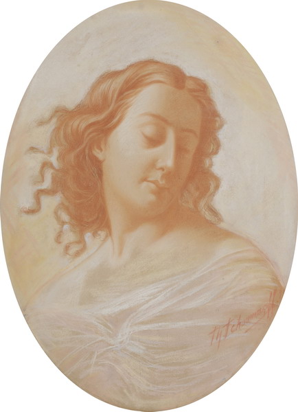 Tête de jeune femme échevelée, tournée vers la droite, les yeux clos