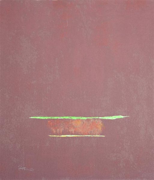 Purple Color Field with Two Green Lines