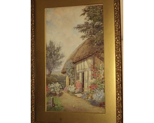 Thatched cottage and garden, possibly in Bignor, Sussex