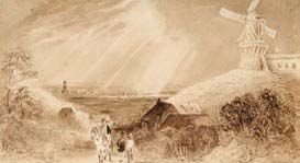 | Elegant figures in a park; Traveller passing a windmill, view to a town beyond | |
