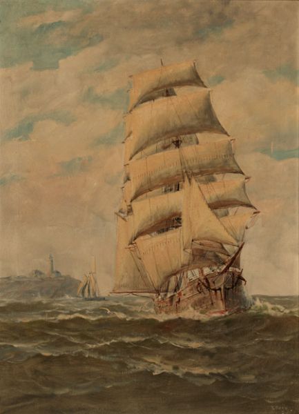 Clipper Ship Off a Lighthouse Point