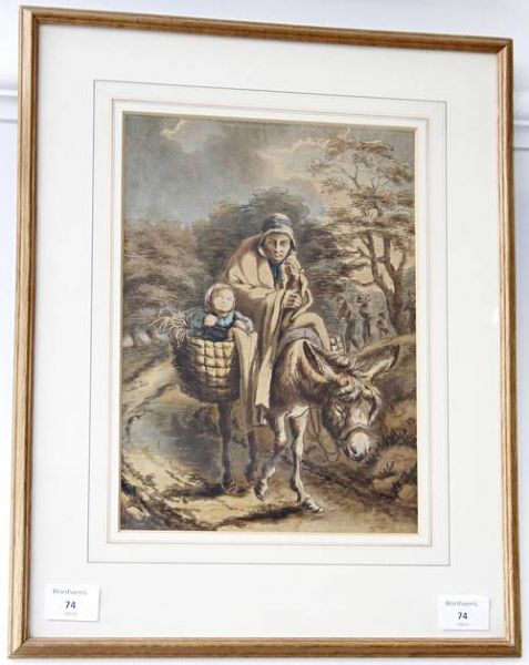 Figures travelling on a donkey
