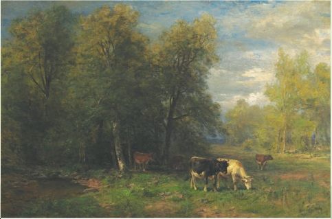 | CATTLE GRAZING BY A WOODLAND POOL | |