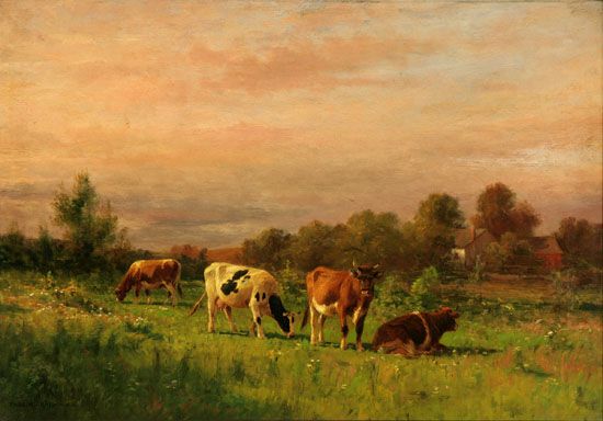 Cows Grazing in a Meadow