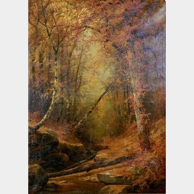 Thomas B. Craig (American 1849-1924)- Fall Woodland Scene- oil on canvas, 1875, signed T. B. Craig 75 lower right. 50 x 36'' | |