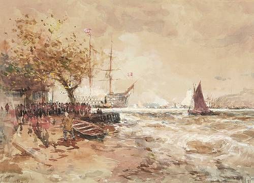 A View of Portsmouth Harbour, with a platoon of soldiers