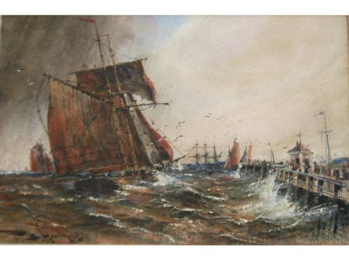 FISHING BOATS OFF A JETTY, STORMY WEATHER