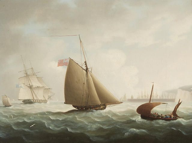 A naval cutter, brig and lugger off the coast