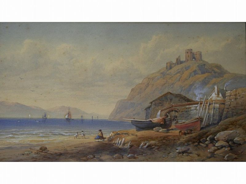 | COASTAL SCENE WITH A RUINED CASTLE UPON A HILL | |