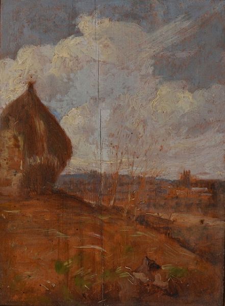 Landscape with barn, a church in the far distance