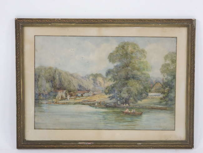 VIEW OF THE THAMES WITH STEAM LAUNCH AND ROWING BOAT