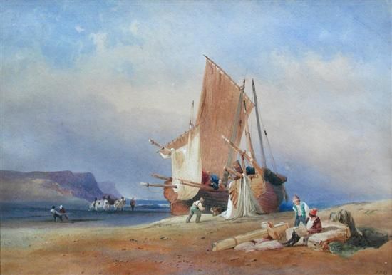 Fishermen Mending Nets by the Seashore "JHB"