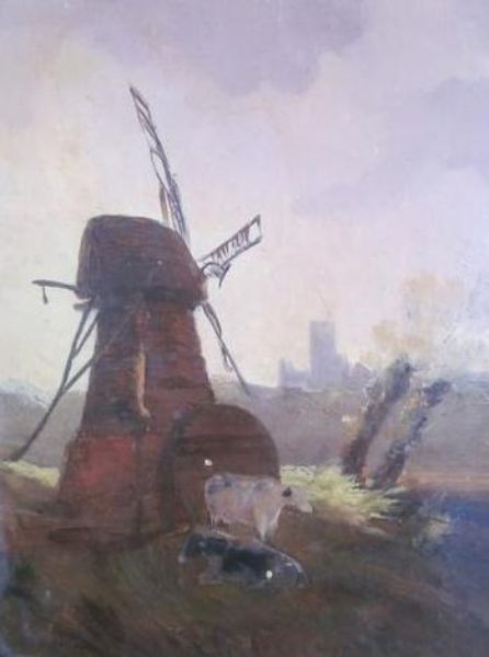 Windmill Scene With Cattle