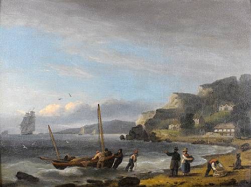 Hauling in the lugger to land the catch at Babbacombe Bay