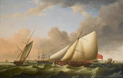 The Revenue cutter 'Greyhound' patrolling in two positions off Walmer Castle