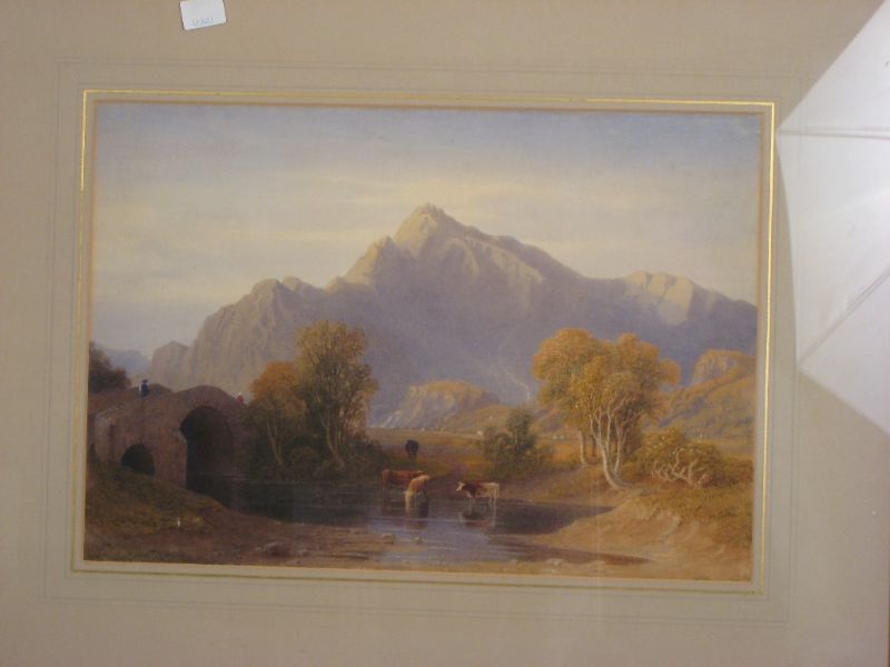A Highland Landscape with Cattle watering at a River