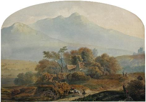Walkers on a Track by a Farmhouse before Ben Nevis