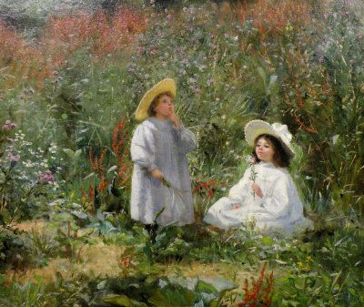 Girls picking flowers in a meadow