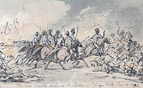 | The Surrey Terribles dispersing the Risters in St. George's Fields, June 13th 1795 | |