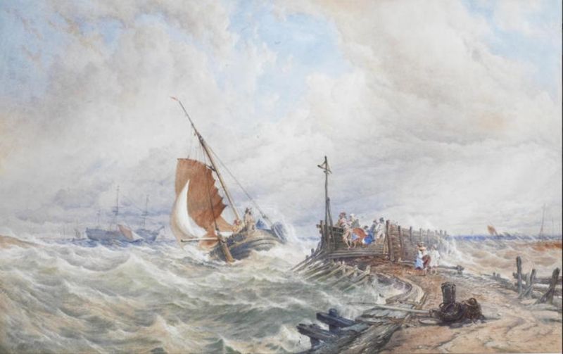 A fishing smack entering harbour